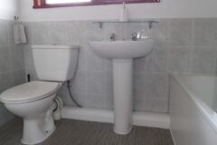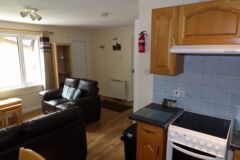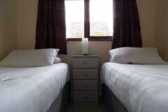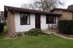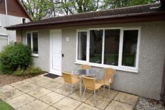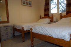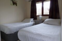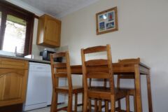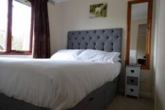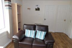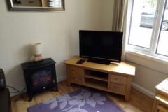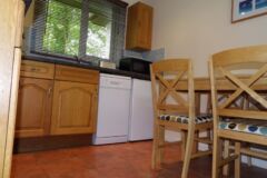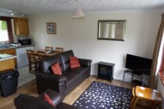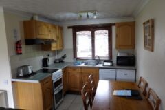 The bungalow has wooden floors through the lounge and leather sofas, carpeted bedrooms and the kitchen is fully equipped, including a dishwasher. Double glazed throughout and heaters in every room, so ideal for stays all year round.